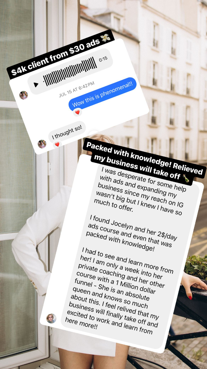 Before working with her we were paying $10 per lead and in less than 3 weeks it was down to $5.25 per lead. Within the first month back working with her we were getting 8X ROI making $22k per week. Within 6 months we were making multi 6-figure months. We’ve never seen that kind of return before on paid social advertising.”